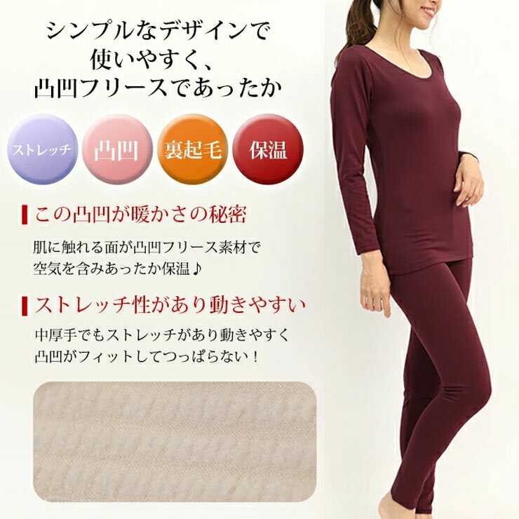 素材 身生地:ポリエステル95%、ポリウレタン5% ゴムテープ部分:ナイロン、ポリウレタン サイズ M/L/LL 特徴 この凸凹が暖かさの秘密 肌に触れる面が凸凹フリース素材で空気を含みあったか保温。